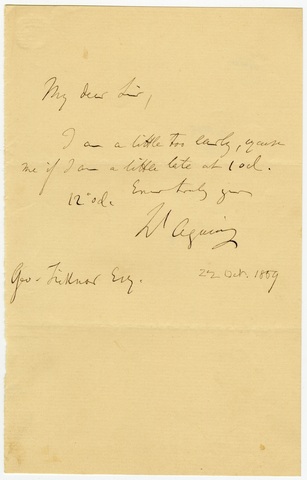 Also in my collection is a little note in Agassiz’s thin, spidery handwriting, so fine that it seems more feminine than that of his wife, a note scribbled hastily on a small sheet of stationery, just a half page ripped off a larger sheet, as one would expect from someone who was socareless with his own things. The ink has faded over the years, as has the knowledge of the occasion on which this note was written. More than halfway down the left side of the page appears the name of the addressee, “George Ticknor, Esquire,” the former Smith Professor of French and Spanish at Harvard University, who had devoted the later part of his career to helping establish the Boston Public Library. “My dear Sir,” Agassiz had written to Ticknor on 22 October 1859, exactly a month before the publication Darwin’s Origin of Species, “I am a little too early, excuse me if I am a little late at 1 ocl.” He signed the note, “12 ocl. Ever truly yours, L. Agassiz.” Having come too early at twelve o’clock, he had left again, apparently resigning himself to the prospect that upon his return at one o’ clock, he’d be late.